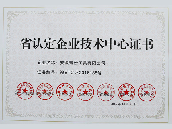 省認定企業技術中心證書