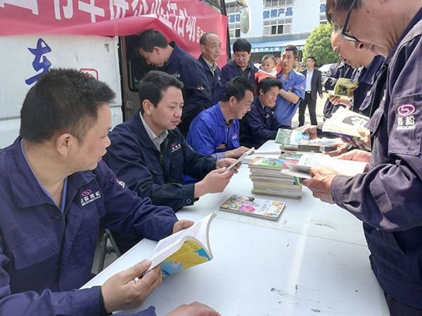 2018年4月28日上午,在“五一”勞動節(jié)來臨之際,為滿足企業(yè)員工朋友的閱讀需求,積極引導(dǎo)員工多讀書、讀好書,用****的書刊激勵員工自立、自強(qiáng),營造良好的讀書氛圍,縣圖書館到我公司開展流動圖書車進(jìn)企業(yè)活動,本次活動的主題是“書箱送春風(fēng),溫情送員工”,圖書館準(zhǔn)備了大量的技術(shù)業(yè)務(wù)書籍,公司一線員工來到流動圖書車旁,爭相查閱技術(shù)資料,閱讀相關(guān)書籍,豐富了員工的精神生活。